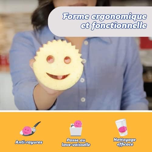 FORME SOURIRE ERGONOMIQUE: Non seulement cette eponge vaisselle est souriante, elle est également bien pensée. Ses yeux et sa bouche permettent une excellente prise en main lors du lavage. La forme circulaire de cette éponge smiley multi-usage permet de nettoyer le fond et les côtés de vos verres, casseroles et poêles, et sa bouche souriante est idéale pour les couverts et ustensiles de cuisine