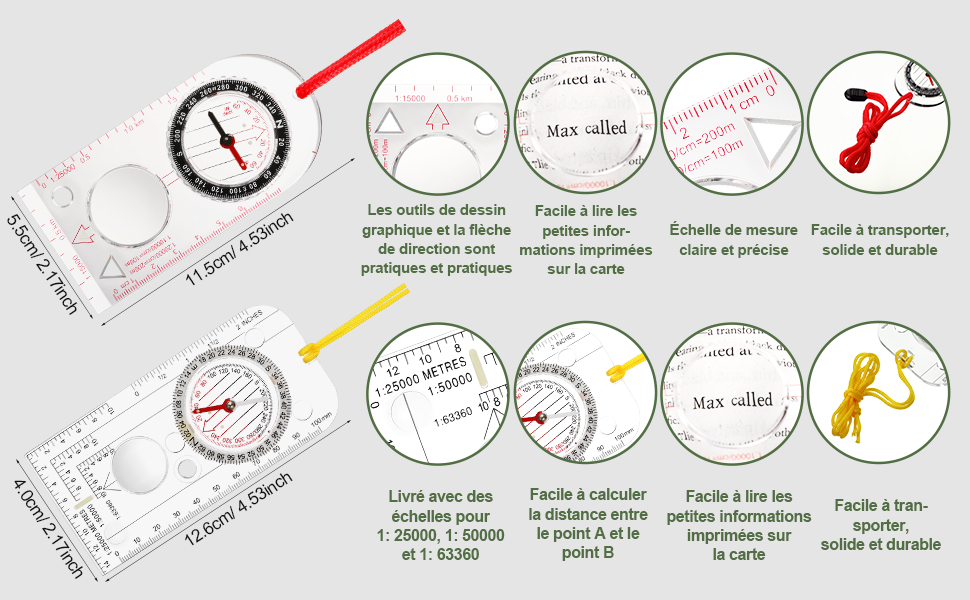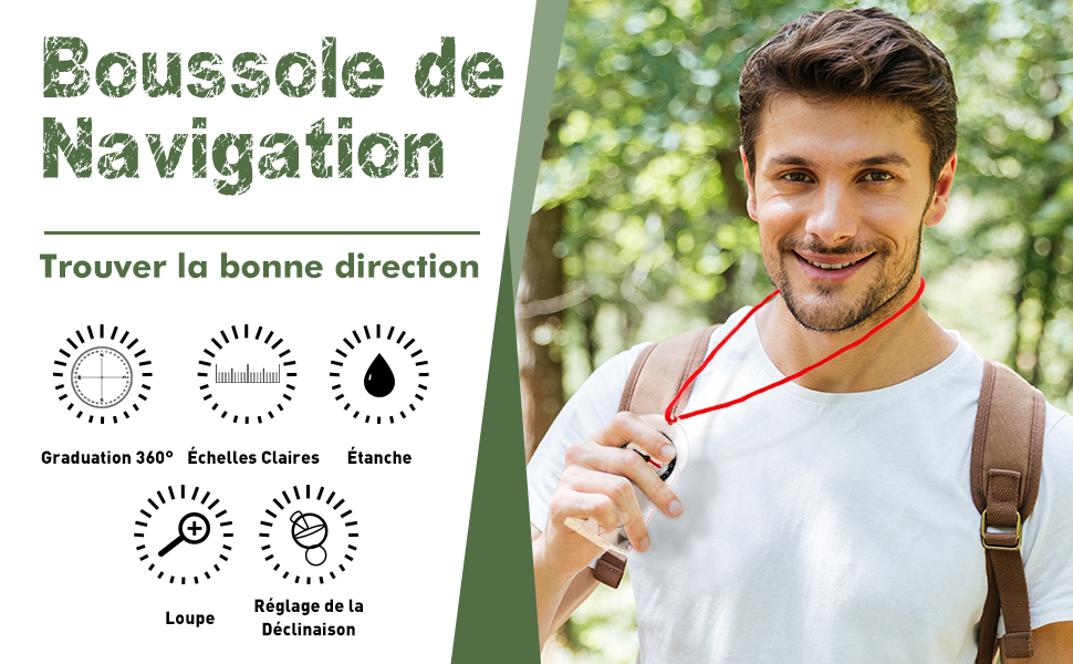 Pratique à accrocher: chaque boussole d’éclaireur est équipée d’une corde en nylon, qui est portable et pratique pour que vous puissiez accrocher la boussole de navigation sur votre sac à dos, valise, véhicule, etc., vous pouvez également l’accrocher ton cou pour libérer tes mains
