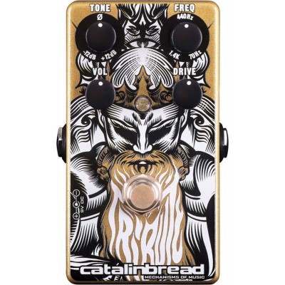 Catalinbread – TributeLa Tribute est un circuit entièrement analogique qui combine un moteur de saturation à grande amplitude extrêmement expressif avec un contrôle de fréquence puissant et flexible.A la base, la Tribute rend hommage à l’un des premiers circuits de Catalinbread, le VariOboost, un circuit doté d’une égalisation paramétrique à une bande surchargée, plutôt qu’un réglage Tone, pour offrir plus de flexibilité.Pour jouer des rythmiques, choisissez une fréquence bas-médium et augmentez-là pour vos gros accords.Pour un solo, allez plus haut pour ajouter de la brillance à votre son.Vous voulez faire comme si vous aviez un effet cocked wah pour jouer « Money For Nothing » ? Vous voulez simuler des micros hors-phase à la Peter Green ? Vous voulez que vos micros simples sonnent comme des humbuckers ? Et inversement ? La Tribute peut faire tout ça et plus encore.Le coeur de la Tribute est un buffer suivi d’un circuit de saturation géré par un potentiomètre double. C’est-à-dire que le Drive affecte 2 paramètres en même temps : un clean bend (doseur de signal clair) et un gain de saturation. Avec le Drive en bas, vous avez votre son d’origine provenant du buffer avec un léger filtre aigu. Avec le Drive en haut, vous avez tout le gain sans le son d’origine. N’importe où enter les 2 vous donne un mélange des 2.